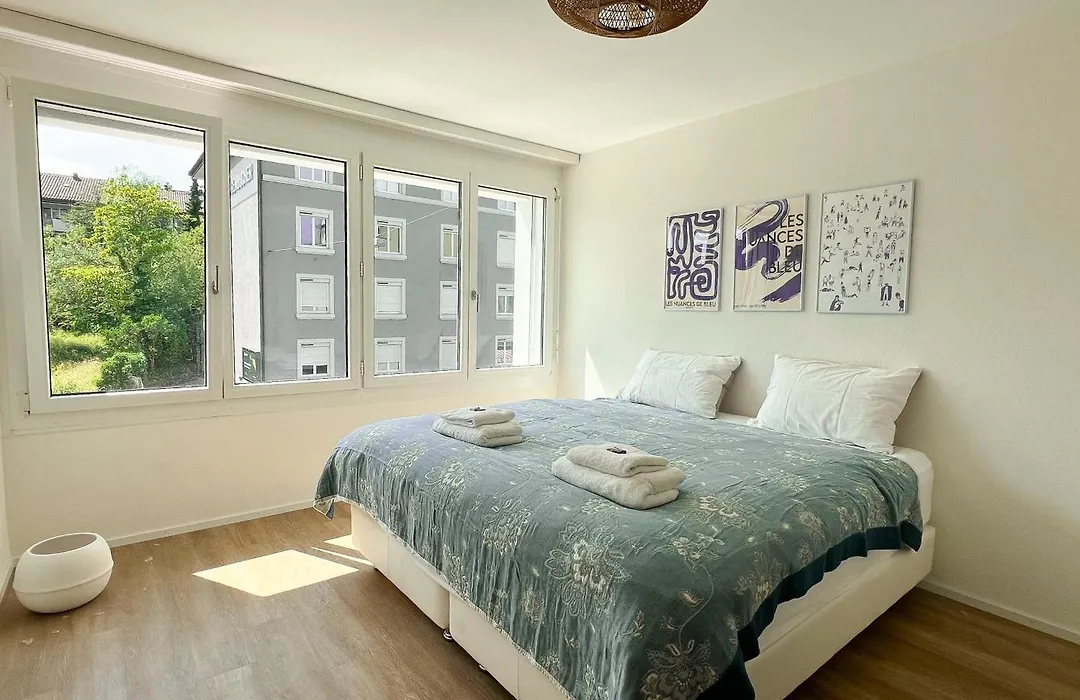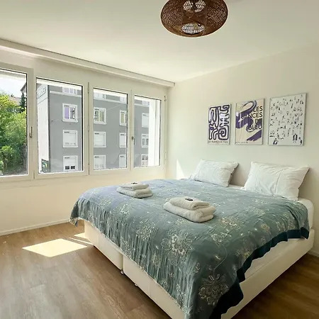 The accommodation features an equipped kitchenette. The nearest bus stop to this apartment is Messe/Hallenstadion, which is about a 5-minute walk away.