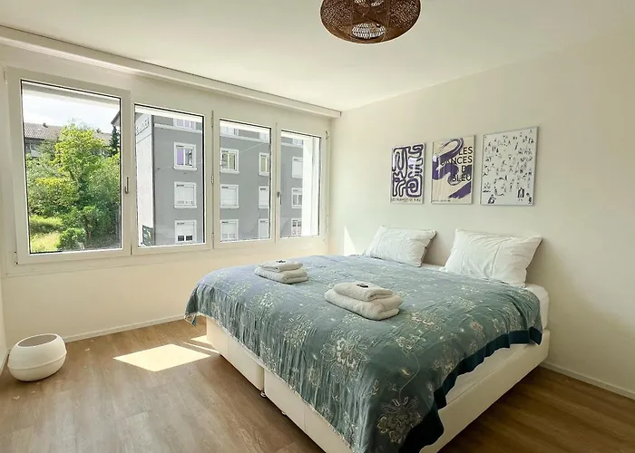 Situated approximately a 5-minute walk from Club Mundwerk, the 70 m² Stilvolle Wohnung In Zuerich Oerlikon! -202- offers guests easy access to various tourist attractions nearby. This 1-bedroom apartment offers modern facilities, such as Wi-Fi and essentials like private parking for car travellers.